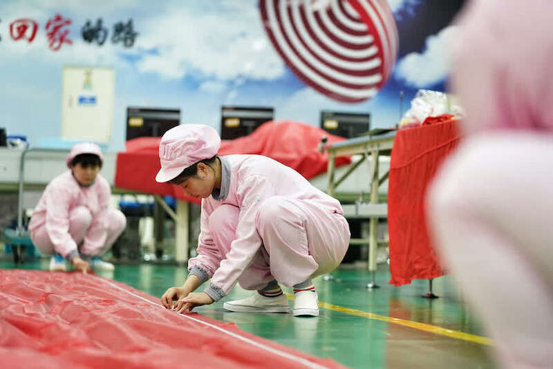 具体来看,每块面料裁剪前,都要自然放置12小时以上,释放材料应力,避免材料裁剪后因应力出现缩皱,导致尺寸偏差。每块裁剪后的旗面均标记缝纫定位点,确保拼接后旗帜图案完美呈现。每处拼接位置均采用航天器降落伞的缝制工艺,确保固定缝纫尺寸内的针脚数量满足范围要求。