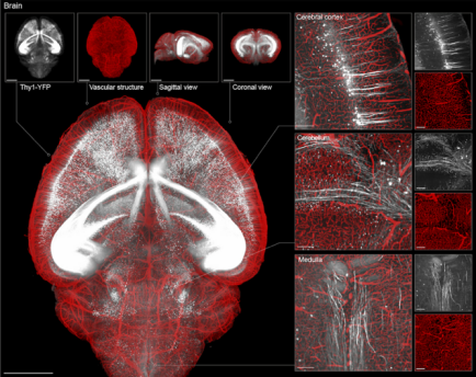 基于该项全球首创的技术,团队在国际上首次实现单神经元水平“输入—输出”的准确链接,为深入解析脑功能的神经环路机制提供了新的机遇。结合团队自主研发的重建算法,VIVIT技术还可构建从亚细胞到全器官的三维图谱,精准再现包括细胞器、神经突触在内的精细结构和位置,为各种器官绘制纳米级三维立体“画像”。