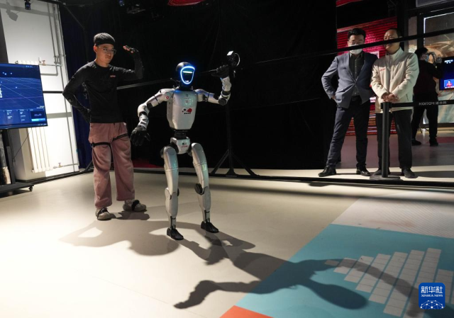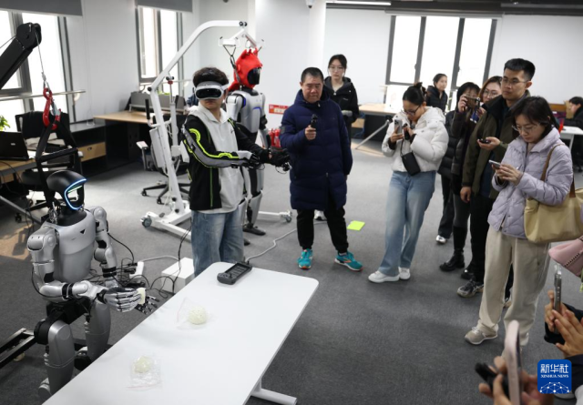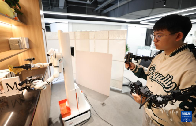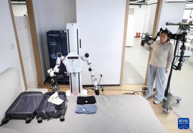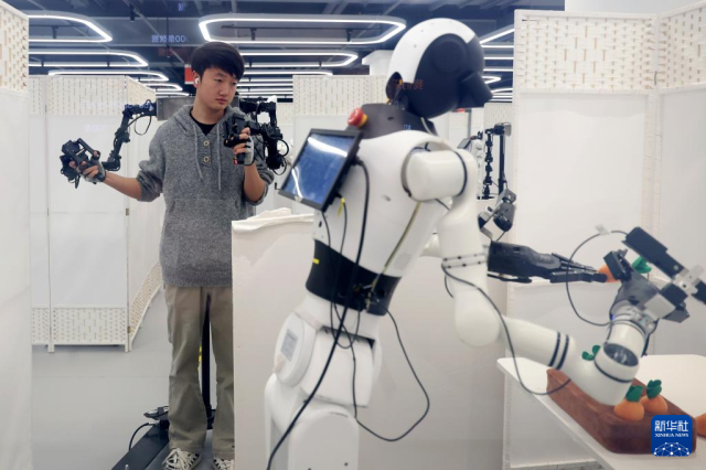 在人形机器人数据训练中心,机器人在工业智造、智慧家庭、商业服务等场景进行数据采集,为人形机器人相关研发提供数据支持。数据采集员在此操控机器人完成一系列特定任务,生成海量动作数据,让机器人“大脑”更智慧。未来,这些机器人将会进入工厂、商超、家庭等更多应用场景。