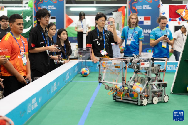 这是11月1日在巴拿马首都巴拿马城拍摄的2025年FIRST全球机器人挑战赛现场。