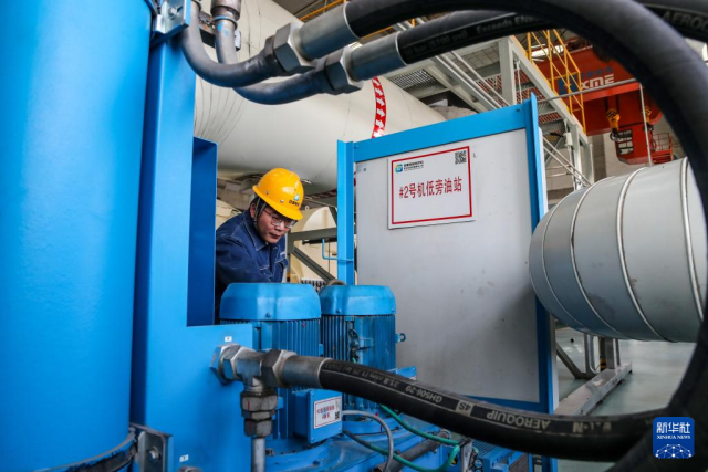 11月19日,工作人员在甘肃电投常乐电厂汽机主厂房内巡检。