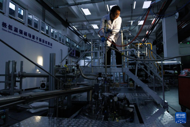 1月26日,在位于北京怀柔的中国科学院物理研究所综合极端条件实验装置极低温强磁场量子振荡实验站,中国科学院电工研究所研究员刘建华(右)、中国科学院电工研究所博士后周本哲在工作中。