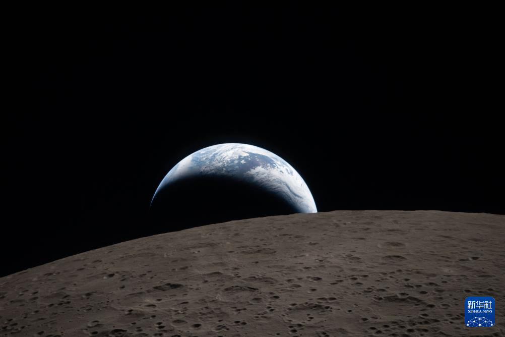 这是4月6日从执行“阿耳忒弥斯2号”载人绕月飞行任务的“猎户座”飞船上拍摄的月球表面。
