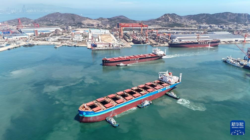 4月13日,由中国船舶集团青岛北海造船有限公司建造的21万吨绿色燃料船舶在办完手续后,出海试航。据了解,北海造船目前在建船舶25艘,手持订单达90余艘,其中绿色燃料船舶占比超九成,部分船舶交船期已排至2030年。