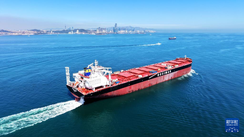 山东青岛:21万吨绿色燃料船舶启程海试