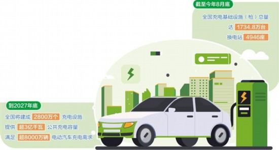 政策发力的背后,是新能源汽车市场需求强劲的现状。公安部数据显示,截至今年6月底,全国新能源汽车保有量达3689万辆,占汽车总量的10.27%。与之配套的充电基础设施建设也取得显著成效,截至今年8月底,全国充电基础设施(枪)总量达1734.8万台、换电站4946座,已建成全球规模最大、覆盖最广、类型最全的充电服务网络。“近几年,公司充电桩出货量增长非常快,今年预计突破百万台。”科大智能(合肥)科技有限公司董事长兼总经理何刚说。