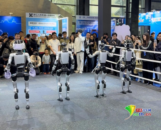 2025年世界互联网大会“互联网之光”博览会现场,人形机器人引人驻足。中国青年网记者张玘云 摄