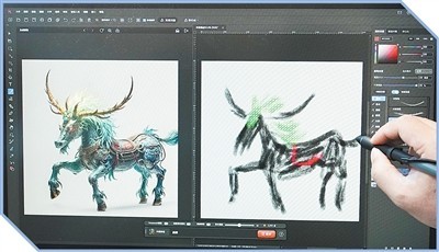 北京石景山区中关村科幻产业创新中心,工作人员展示一款图像软件的AIGC(人工智能生成内容)功能。