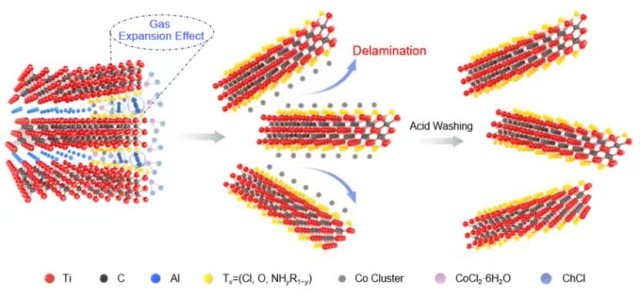 MXene具备优异的导电性、可调控的二维片状结构以及丰富的表面化学性质,在储能、电磁屏蔽、催化等领域展现出广阔的应用前景。然而,当前少层MXene的制备仍普遍依赖复杂的多步工艺流程,且涉及含氟、有毒试剂,导致生产成本居高不下,环境风险较高。